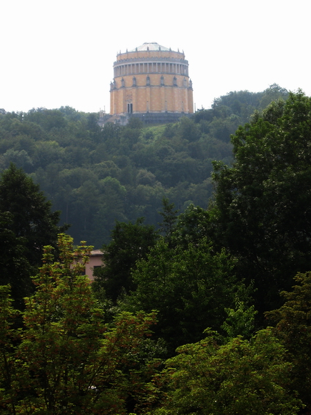 Evening of July 3: Kelheim after a short half-day's ride (on account of my morning in the laundromat). On a hill above the town, is this magnificent memorial, the Hall of The Liberation, commemorating the victory of the Germans over Napoleon. It was built by King Ludwig I of Bavaria, father of mad king Ludwig II. Extravagent projects ran in the family. |