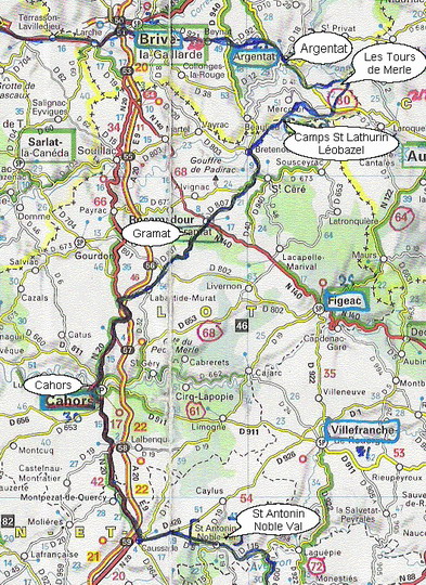 28: Argentat to Camps St. Lathurin-Leobazel June 29: Camps to Gramat : 43km June 30: Gramat to Cahors : 60km June 30: Cahors to St. Antonin Noble Val : 68km