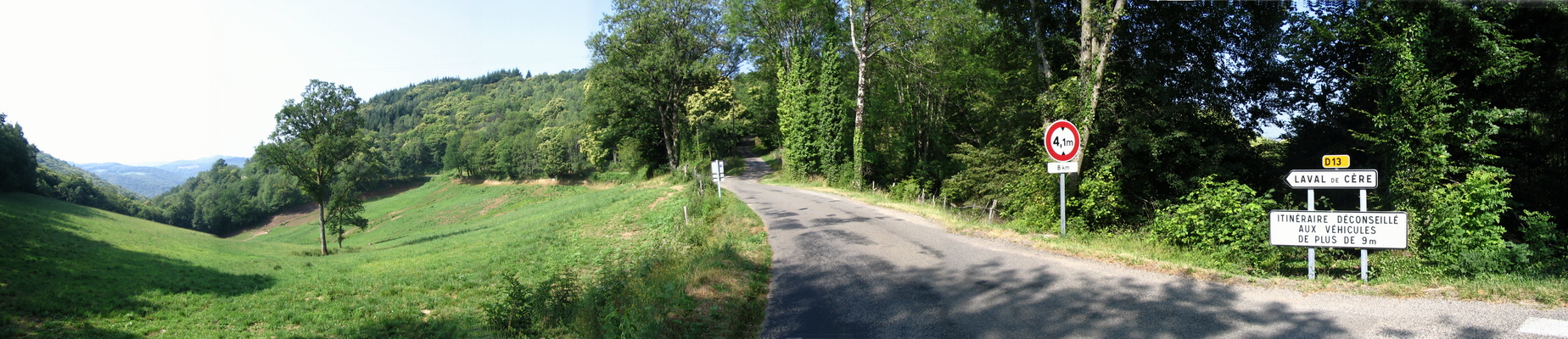 The road from Camps St.Mathurin Leobazel down the gorge of the river Cère, morning of juin 29. The