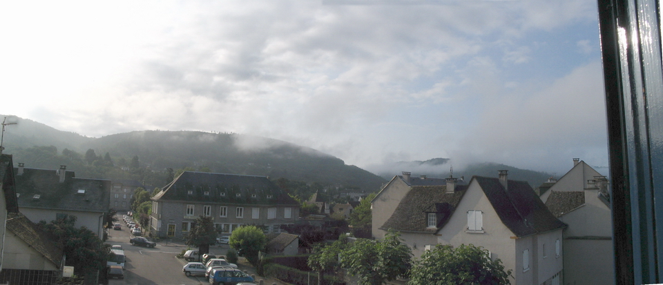 View from my hotel window, Argentat, very early morning of juin 28. It had rained during the night and was trying to dry out with the early sun.