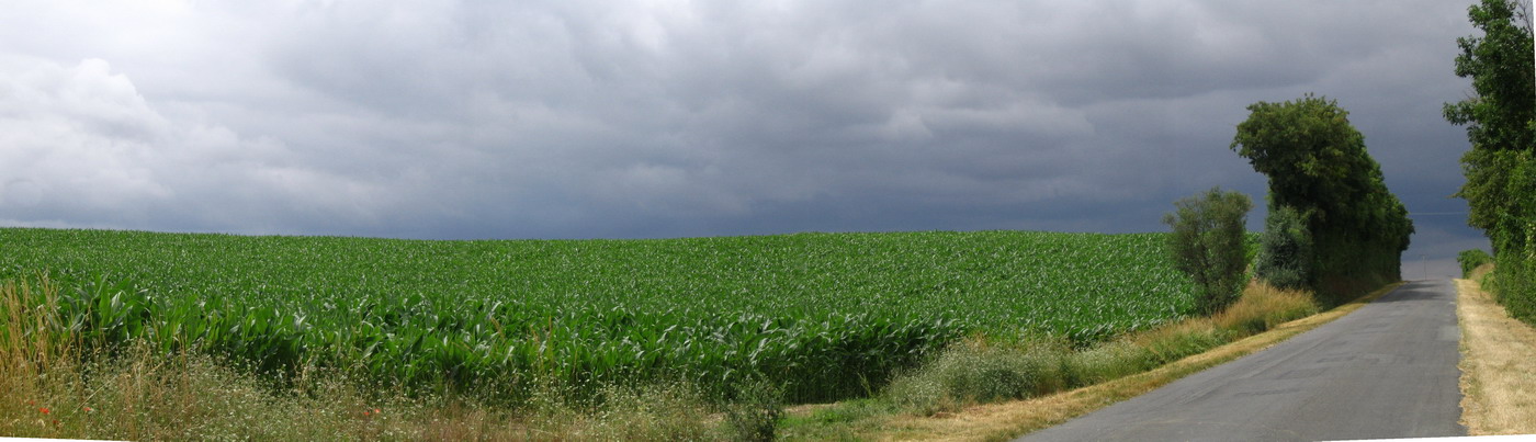 On the road south from Melle. The warm morning was turning into a sultry afternoon.