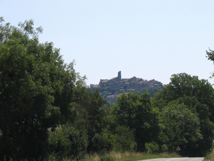 July 2 Cordes-sur-Ciel, between St Antonin and Albi. "sur" [on] in a French placename is usually followed by the name of a river. In this case though, "Ciel" is "the sky"; literally "Cordes-in-the-Sky". The town was built on an easily-defended hilltop and successfully resisted seiges during the Albigensian Crusades ( early 1200's). The D-600 skirts the town about halfway up the hill; I didn't go to the top. It was just tooooo steeeep. |