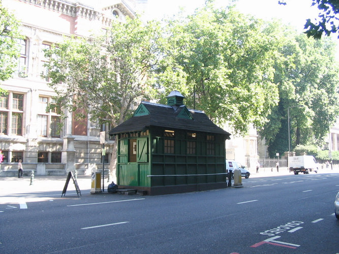 July 17 I couldn't believe this. Literally in the middle of Brompton Road in Knightsbridge, near Harrod's, a coffee shop, probably dating back to the 1930's. This is one of London's "red routes", meaning no stopping, ever, for any reason. But drivers do stop, run out across three lanes of traffic, buy their coffee and a sandwich through the half-door you see in the picture, run back to the curb, and drive on. Only the English do this sort of thing.