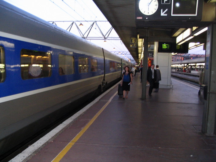 July 17 So, early early, bwilsonduncan, Vélo & Ramorgue wheeled through the dark streets of Lyon to catch their train. To my amazement everything clicked. Got to the station just as the sun rose, threw luggage onto a trolley, dismantled Ramorgue, stuffed her into her bag, and onto the trolley, headed for the platform and .. ...off to London. Arrived in London before lunch. Amazing. You may detect a note of pessimism in this part of my account. I do believe that railway stations and airports are a favourite playground for Murphy [ of 'Murphy's Law' ] |