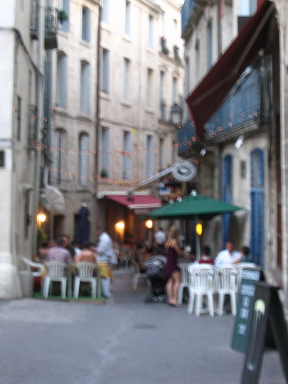Terrace restaurants in the Rue Jean Moulin. Had supper at a Bretagne restaurant that served everything on crêpes. Guess that means it's a crêperie.