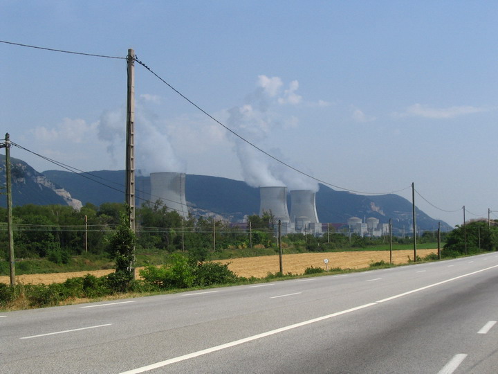 July 12 Tricastin, north of Montelimar. The map says "Centre Hydro-Électric" but it's actually nuclear. I saw three more nuke plants in the valley. Frant's has a lot of nuclear power. I