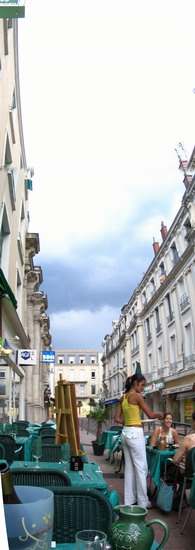 Taverna in Valence. The weather had been hot, over 35° every day for weeks, but this evening clouds were building over the mountains and it was beginning to cool off.