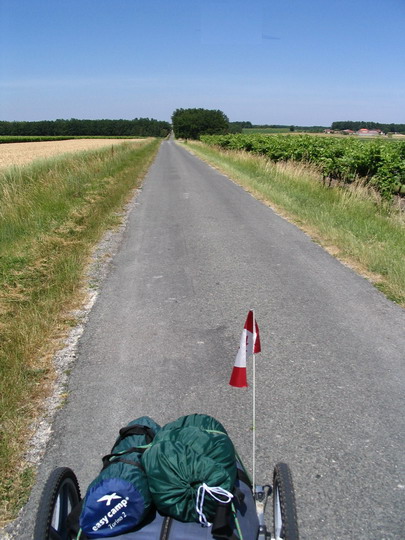 out, Vélo !! The trouble with these straight roads is that they almost never go around anything. Like hills, for instance. That can make cycling wearying; |