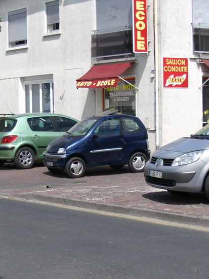 At the Auto-École [driving school] in Saujon. From my observations on the road, this is the worst car in Europe. My advice: 1) don't buy one, and 2) if you do buy one, buy it at the top of a hill. Check it out