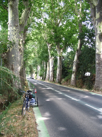 This is the bark [écorce] of a tree in Tarascon; I believe it is a eucalyptus. They are planted widely in the region as roadside shade trees.