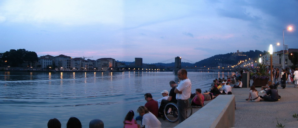 On the riverfront, waiting for les artifices de feu [the fireworks].