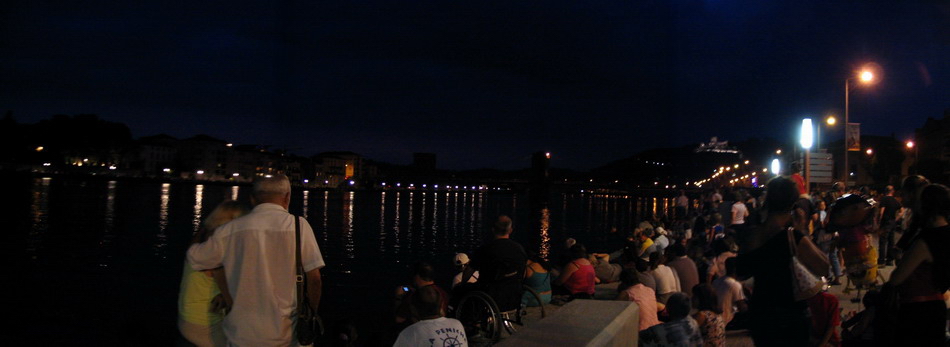 On the riverfront, still waiting for les artifices de feu [the fireworks].